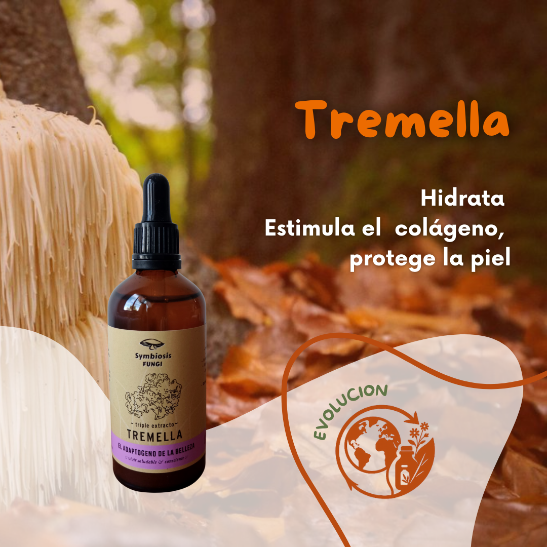 La Tremella contiene polisacáridos naturales que retienen agua en la piel. Su acción es comparable al ácido hialurónico, ayudando a mantener la elasticidad y firmeza. Consumir este extracto regularmente puede mejorar la hidratación, reducir la sequedad y favorecer una piel luminosa y saludable.